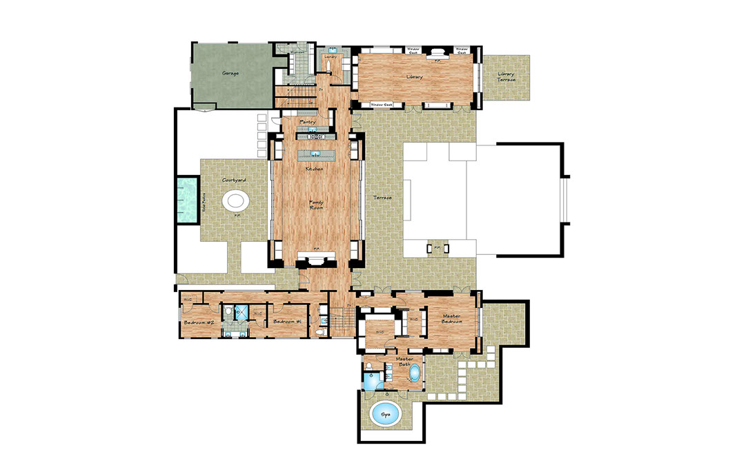 The gorgeous exterior rises from its natural setting. The mature and refined landscaping includes an oversized 70' x 20' swimming pool, a spa at the pool and another off the master bath, outdoor dining area, built-in BBQ, two exterior fireplaces, a fire pit and a fountain. Towering redwoods and heritage oaks surround you.