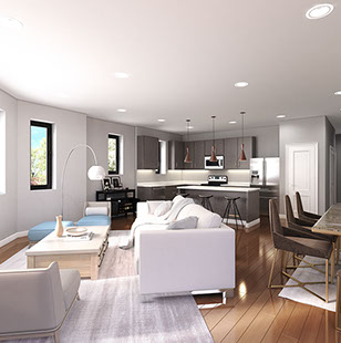 ...features private outdoor space, 1800 SF single floor residences, attached garage parking, and top-of-the-line finishes.