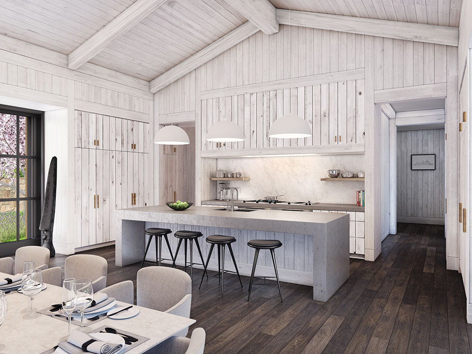 Featuring Crittall Steel windows and doors from England, American White Oak floors, custom Cedar panelling, built in cabinets throughout, marble and zinc counter tops, Gaggenau and Miele appliances, Mitsubishi HVAC system, and Lutron Lighting and home automation, the interior is extremely impressive yet comfortable.